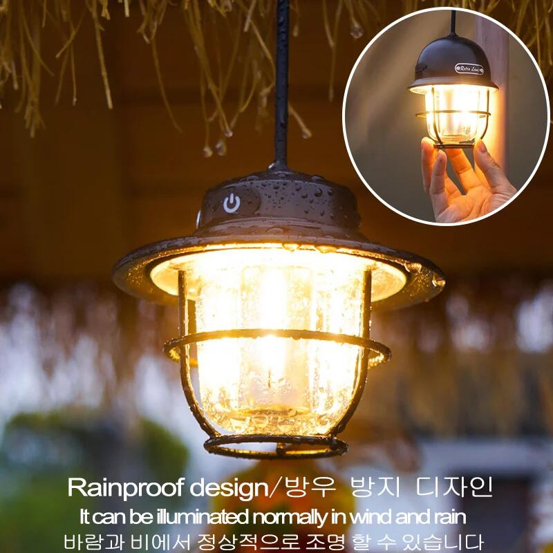 • LED Camping Lamp Stepless Dimming Camping Lights Retro Hanging Tent Lamp Waterproof Rechargeable Emergency Light Lantern